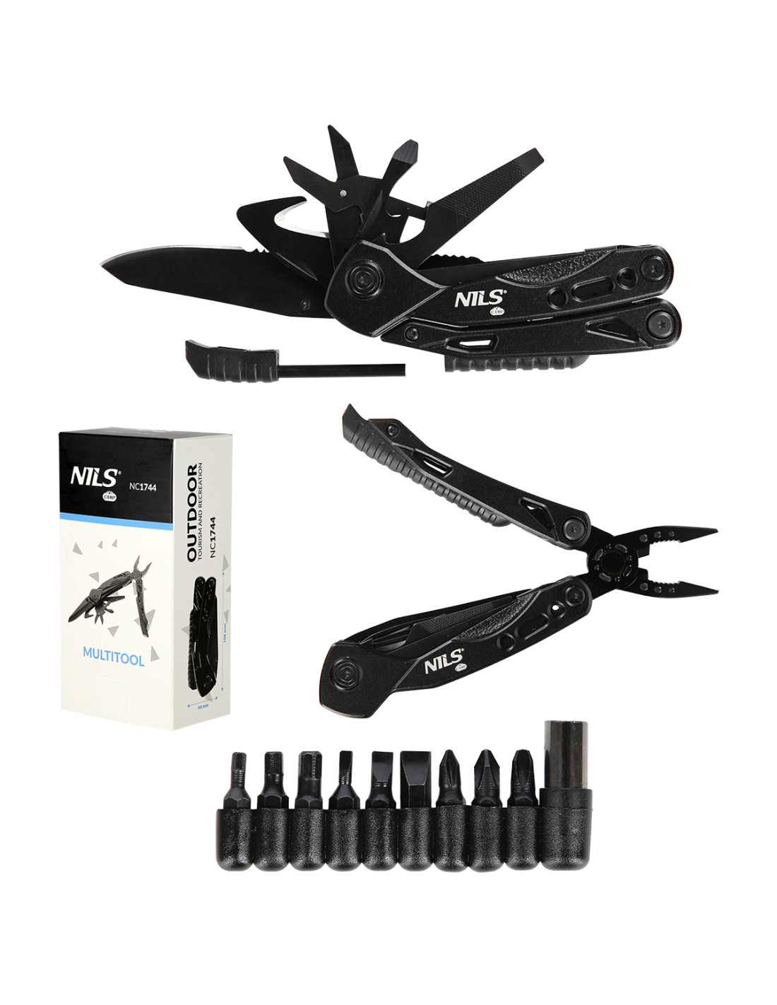 Das Multitool NC1744 unserer Marke NILS CAMP ist ein multifunktionales Werkzeugset für Heimwerker, Angler oder als zusätzliches Accessoire zu Hause oder im Auto. NC1744 besteht aus 12 wichtigen Werkzeugen, die das Funktionieren bei Wanderungen und alltäglichen Aktivitäten erleichtern. Das Produkt ist aus rostfreiem Stahl gefertigt, was es sehr praktisch und langlebig macht. Darüber hinaus enthält das Set 9 verschiedene Bits und ein abschließbares Etui mit der Möglichkeit, es am Gürtel zu befestigen.