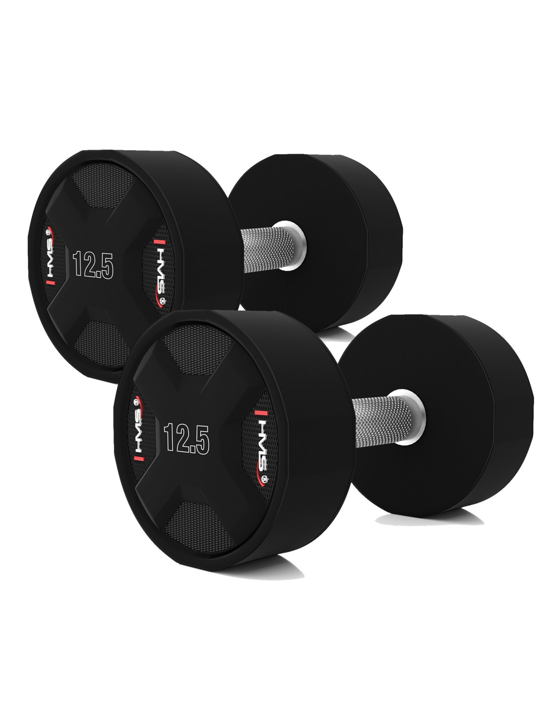 Jede HPC-Hantel ist mit einem speziell entwickelten Griff mit rutschfester Oberfläche für einen sicheren und bequemen Halt ausgestattet. Der gerändelte Griff aus verchromtem Stahl verhindert ein Abrutschen der Hände und erhöht die Sicherheit und den Komfort beim Training.
