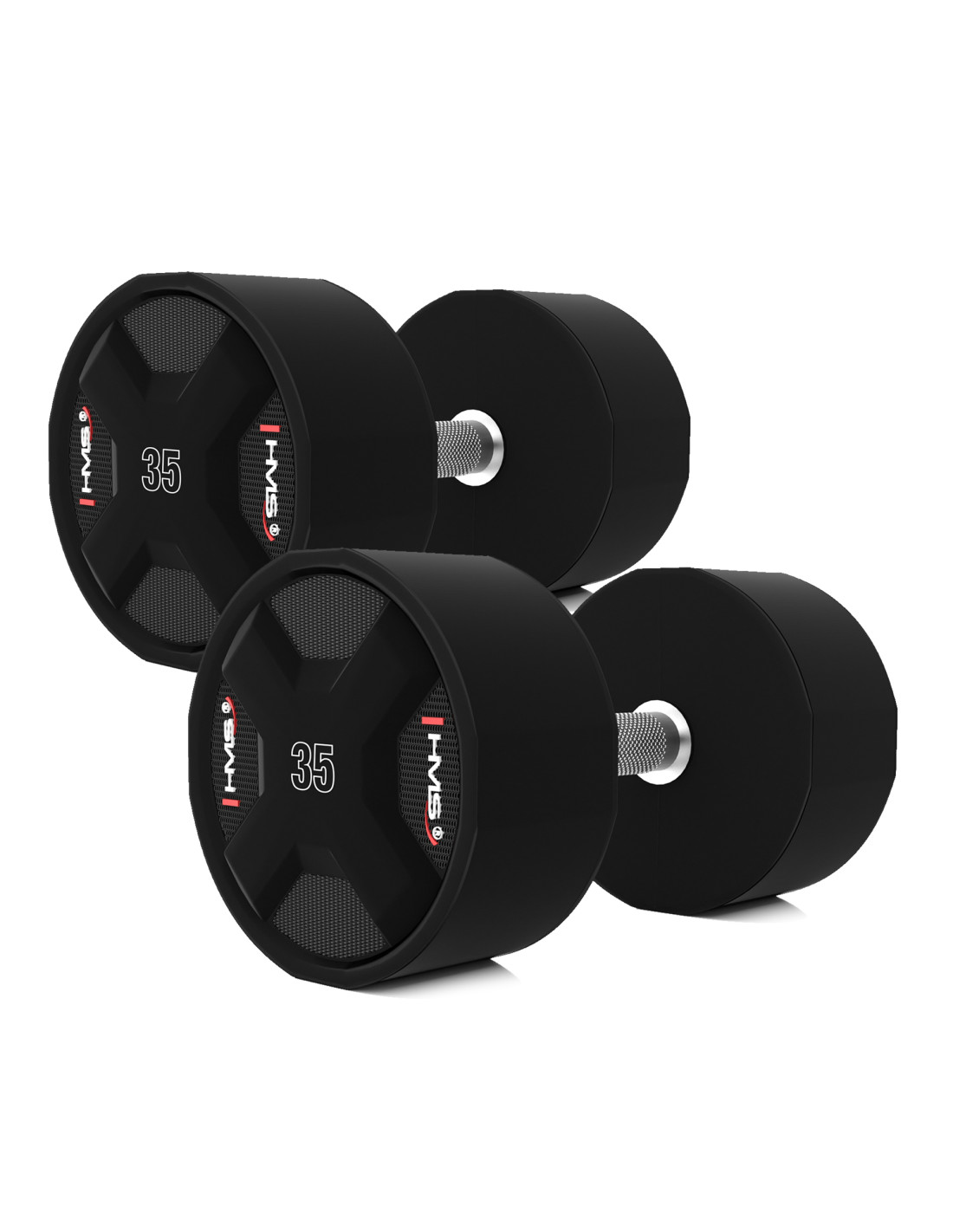 Jede HPC-Hantel ist mit einem speziell entwickelten Griff mit rutschfester Oberfläche für einen sicheren und bequemen Halt ausgestattet. Der gerändelte Griff aus verchromtem Stahl verhindert ein Abrutschen der Hände und erhöht die Sicherheit und den Komfort beim Training.