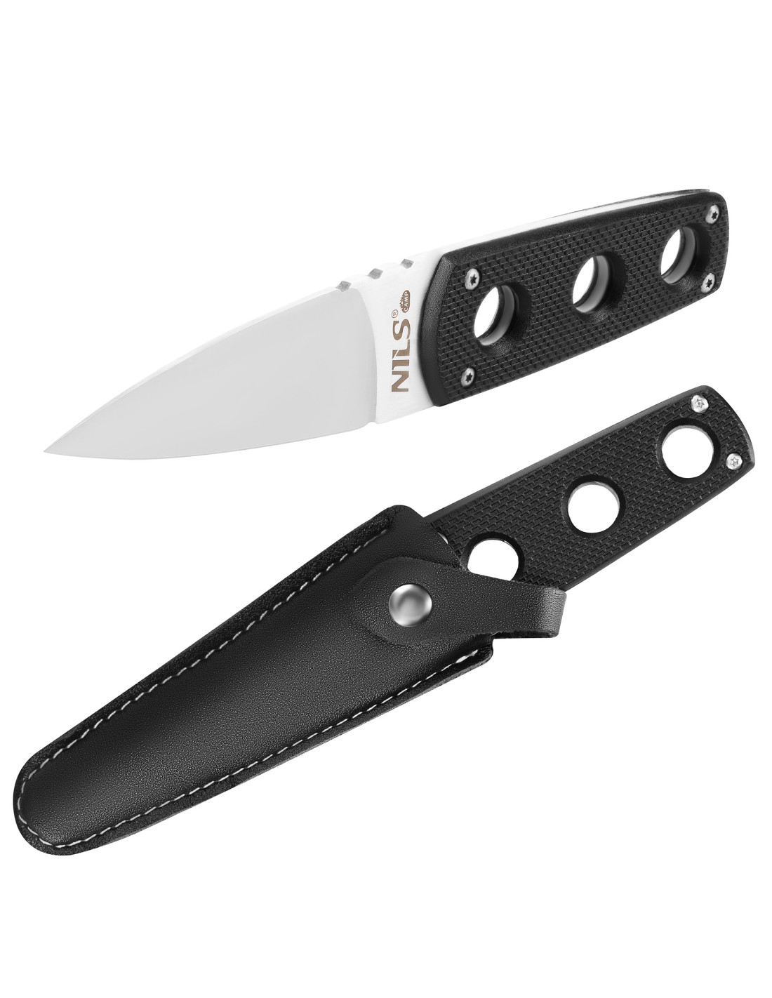 Das Messer wird mit einer praktischen Klingentasche geliefert, die die Klinge vor Beschädigungen schützt und für Sicherheit bei Lagerung und Transport sorgt. Die Tasche lässt sich einfach an einem Gürtel, Rucksack oder anderen Ausrüstungsgegenständen befestigen, so dass das Messer immer griffbereit ist.