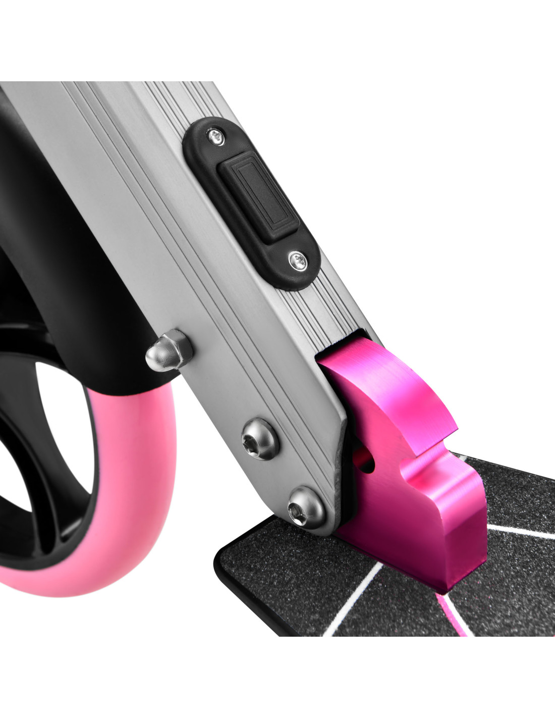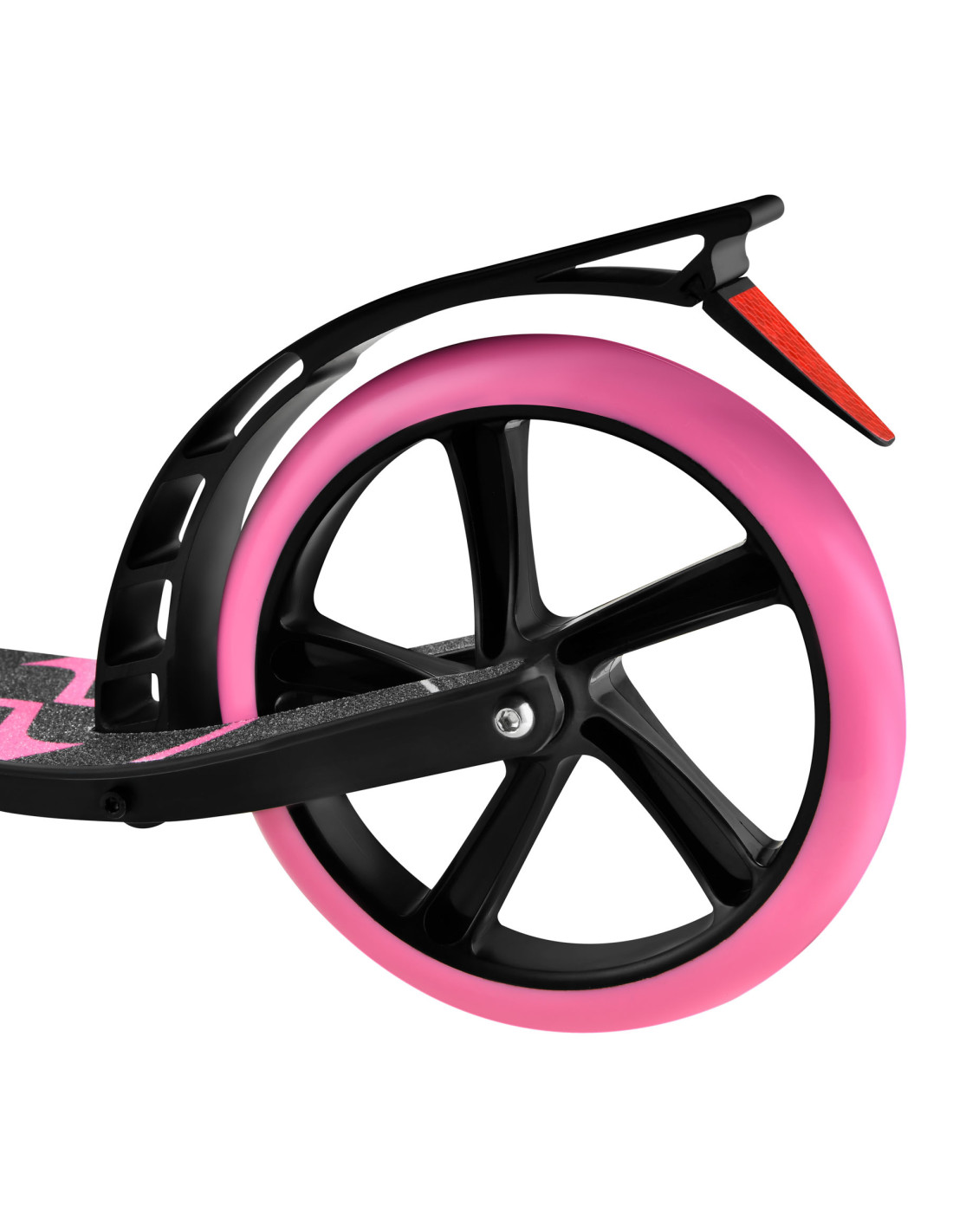 Dank der großen Polyurethan-Räder mit einem Durchmesser von 200 mm und hochwertigen ABEC 7-Lagern bietet der Roller auch auf unebenem Untergrund eine sanfte Fahrt. Er funktioniert sowohl auf Asphalt als auch auf gepflasterten Gehwegen einwandfrei, garantiert Komfort und minimiert Vibrationen.