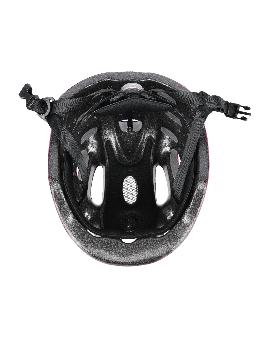 Der Helm ist in unterschiedlichen Größen erhältlich, aber verfügt auch über ein System, das eine ideale Anpassung ermöglicht. Dies erreichen Sie durch den Drehverschluss auf der hinteren Seite dieses Helmes. Das Kinnband mit dem Gurtbandverteiler trägt zur Verhinderung des Verrutschens bei. Das schnelle Abnehmen des Helmes stellt auch dadurch kein Problem dar. Ein sehr interessantes und gleichzeitig nützliches Element ist eine LED-Lampe im hinteren Teil des Helms. Kinder werden dadurch für ihre Eltern sichtbarer. Dieses Element wird auch dem Kind mehr Freude bereiten.