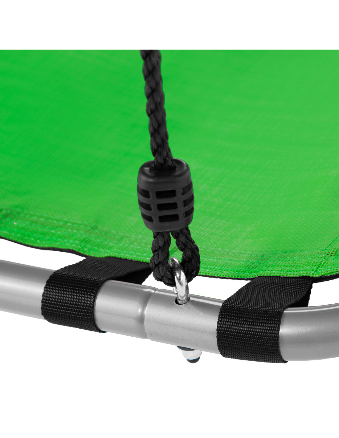 Der Rahmen besteht aus langlebigem Stahl mit einem Durchmesser von 25 mm und einer Dicke von 1,4 mm, was die Stabilität und Langlebigkeit der gesamten Struktur gewährleistet. Die 180 cm langen und 1 cm dicken Seile ermöglichen eine schnelle Montage der Schaukel an Bäumen, Rahmen oder anderen Strukturelementen. Die maximale Tragfähigkeit von 150 kg gewährleistet eine sichere Nutzung für Kinder und Erwachsene.
