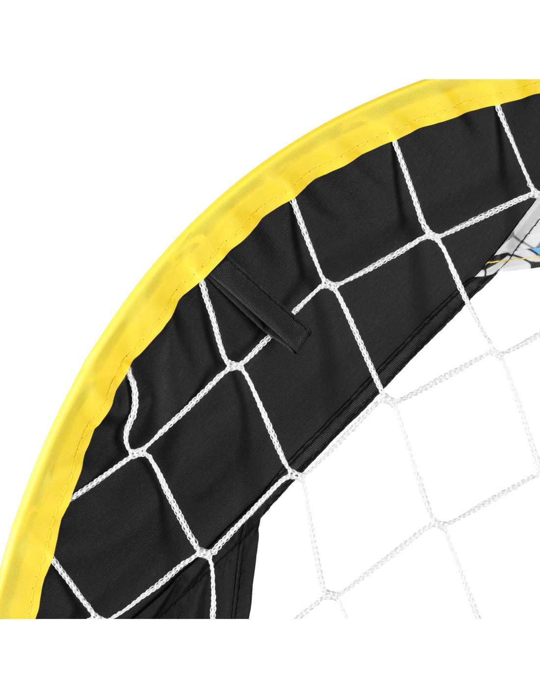 Das Tor wurde aus hochwertigen Materialien gefertigt. Der Rahmen basiert auf flexiblen und gleichzeitig robusten Glasfaserstäben, die für Langlebigkeit und Formbeständigkeit sorgen. Das Polyester-Netz garantiert Reißfestigkeit und Witterungsbeständigkeit. Zusätzlich sind drei Metallstifte im Lieferumfang enthalten, mit denen das Tor auch bei stärkerem Wind oder intensivem Spiel stabil am Boden befestigt werden kann.