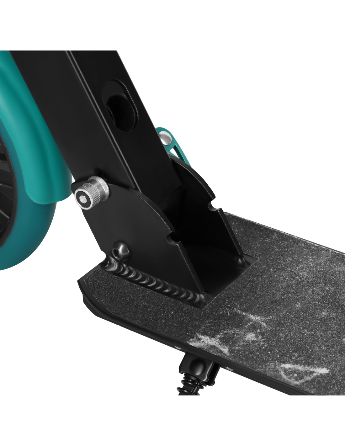 Der Rahmen des Tretrollers besteht aus robustem Aluminium, das eine hohe Langlebigkeit und Widerstandsfähigkeit gegen mechanische Beschädigungen gewährleistet und gleichzeitig leicht ist. Der HM181T Tretroller wiegt nur 4,4 kg und ist daher leicht und einfach zu transportieren, auch von jüngeren Kindern.