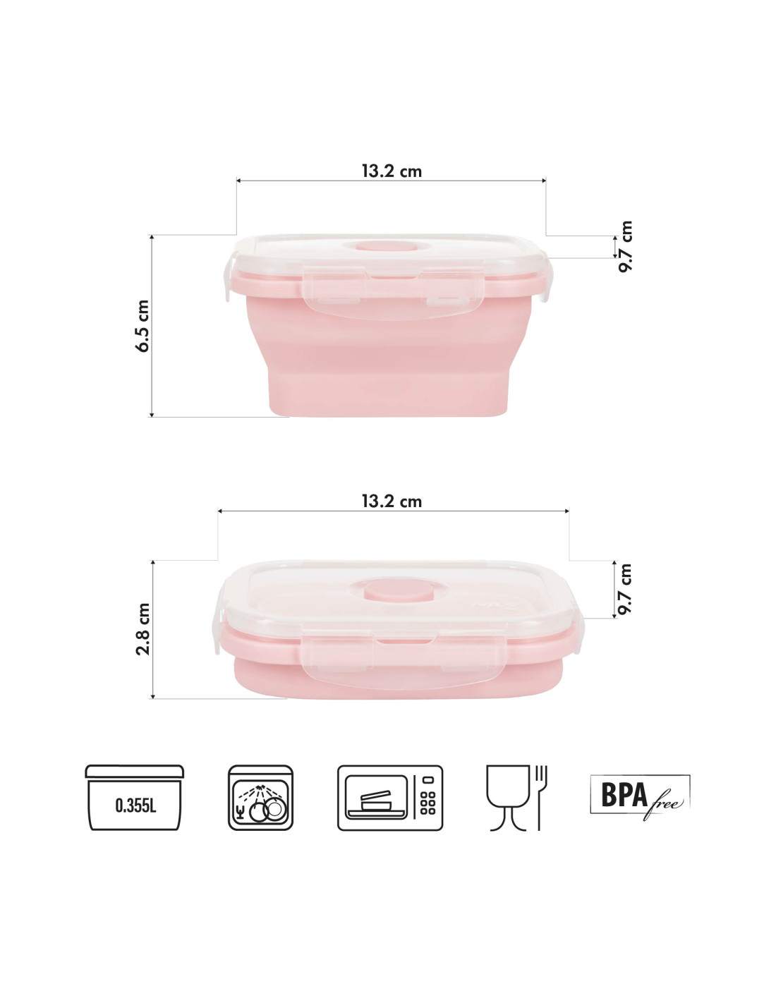 Its foldable design allows you to reduce the volume of the container in seconds, so it fits easily into a backpack, bag or drawer without taking up unnecessary space. It is the perfect option for work, school or travel – whenever you need a lightweight, compact and leak-proof food container.