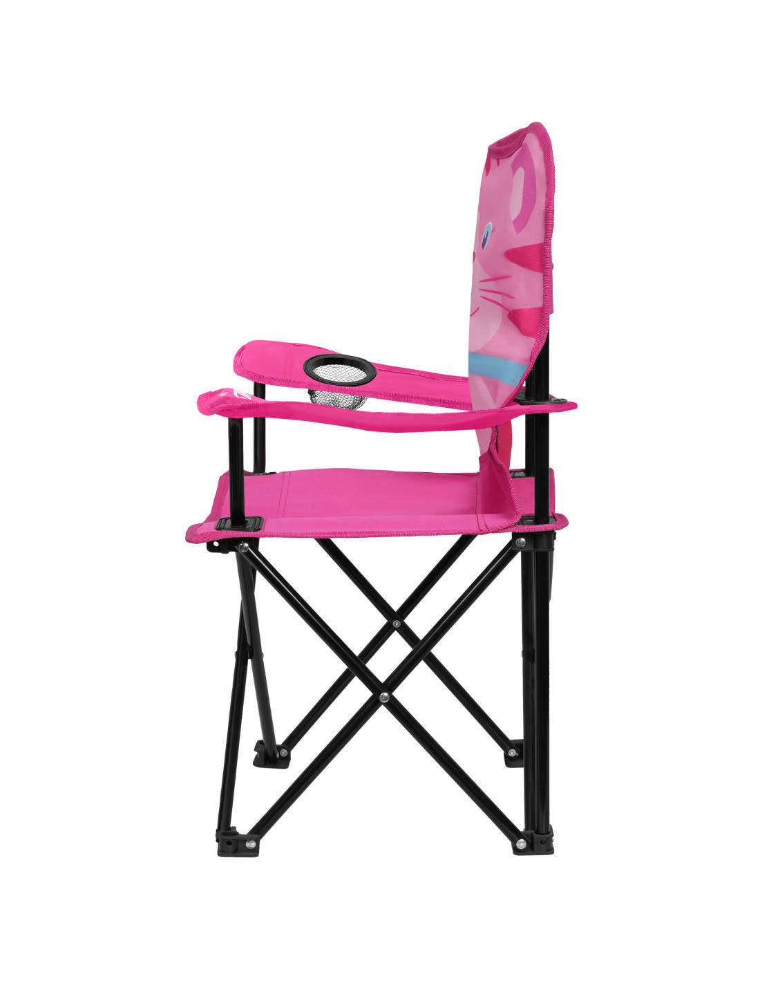 Der Rahmen des Stuhls besteht aus einem robusten Stahlrohr mit einem Durchmesser von 13 mm und einer Wandstärke von 0,7 mm, das schwarz pulverbeschichtet ist. Der Sitz besteht aus strapazierfähigem 600D-Polyester, der mit einer PVC-Schicht überzogen ist, was seine Widerstandsfähigkeit gegen Schmutz und Feuchtigkeit zusätzlich erhöht. Ein schwarzes Verstärkungsband erhöht die Haltbarkeit der Konstruktion auch bei intensiver Nutzung.