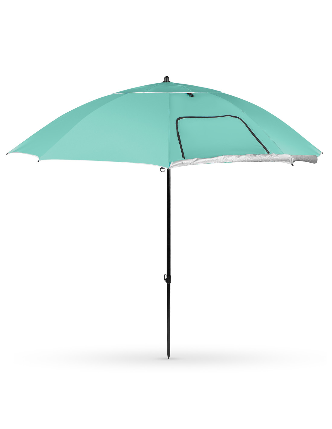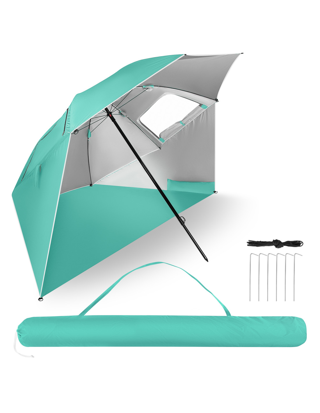 Im Inneren des Sonnenschirms befindet sich eine praktische Tasche für Kleinigkeiten – ideal für Handy, Sonnenbrille, Schlüssel oder Sonnencreme. Das Ganze ist in einer handlichen Transporttasche verpackt, die den Transport und die Aufbewahrung des Sonnenschirms erleichtert. Im Lieferumfang sind auch Heringe und Befestigungsschnüre enthalten, die auch bei stärkerem Wind für Stabilität sorgen.