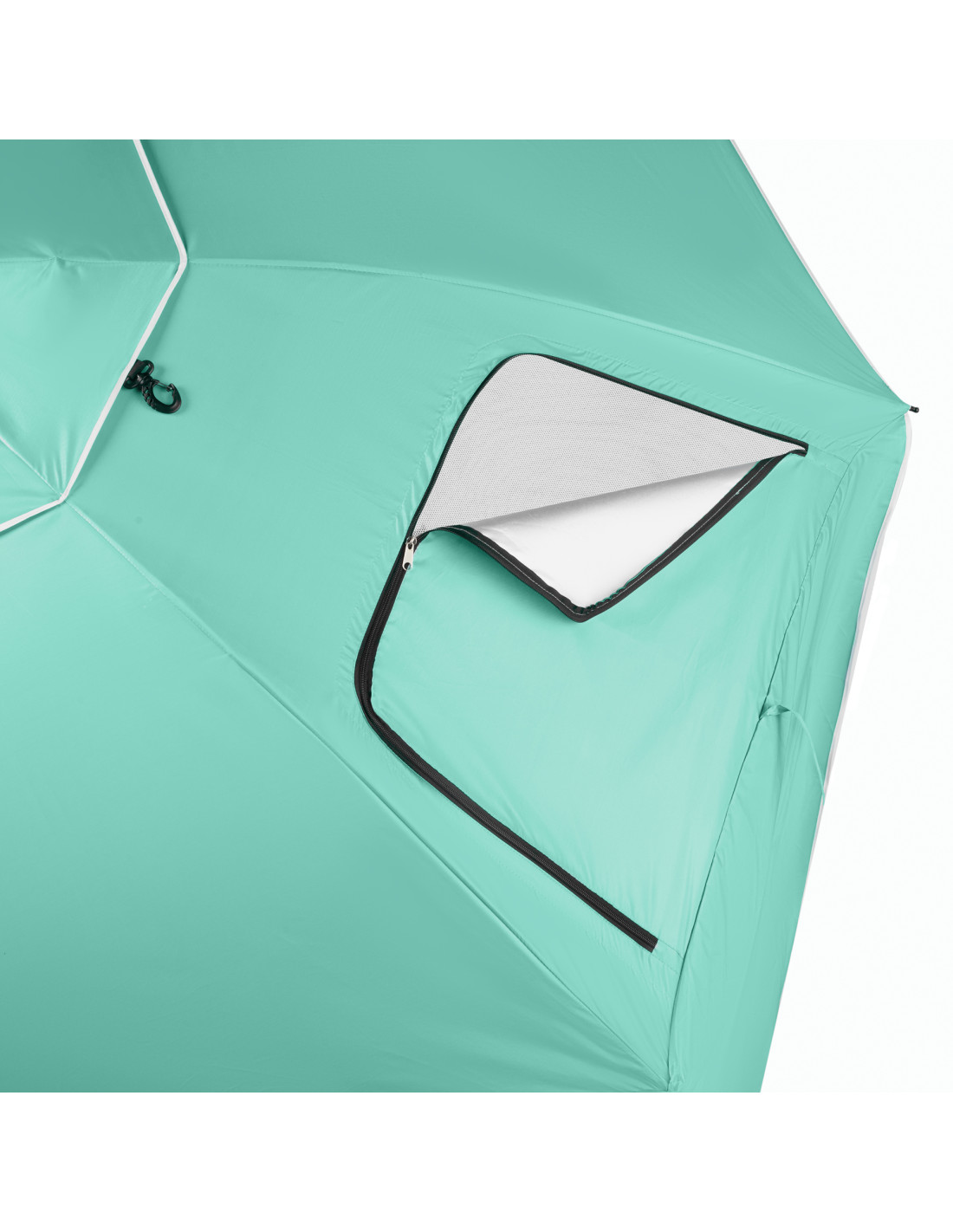 Der Sonnenschirm ist mit einem abnehmbaren Boden mit den Maßen 250 x 140 cm ausgestattet, der zusätzlichen Komfort bietet. Er isoliert perfekt gegen Sand oder feuchten Boden und schafft so einen sauberen und sicheren Platz zum Entspannen, Spielen für Kinder oder zum Verstauen von Sachen. Bei Bedarf kann der Boden leicht abgenommen werden – der Sonnenschirm wird dann zu einer klassischen Überdachung.