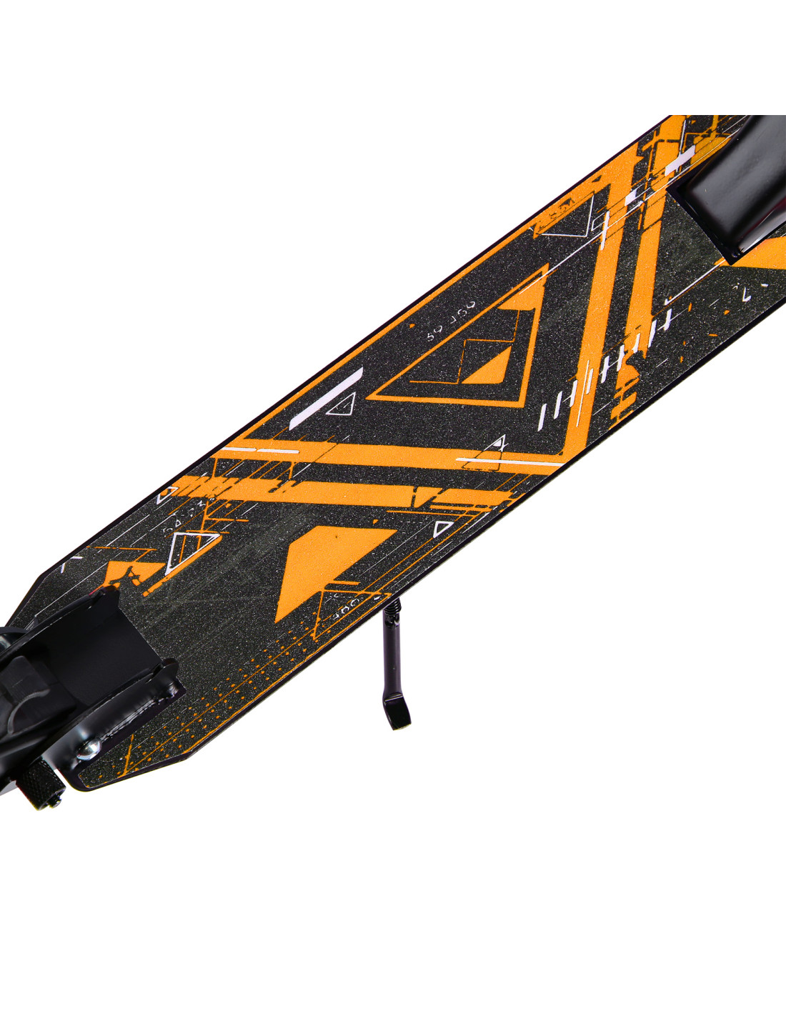 Die stählerne, rutschfeste Plattform bietet sicheren Halt für Ihre Füße, selbst bei intensivster Fahrt, und die Fußbremse erhöht die Sicherheit, indem sie volle Kontrolle über das Fahrzeug in jeder Situation ermöglicht.