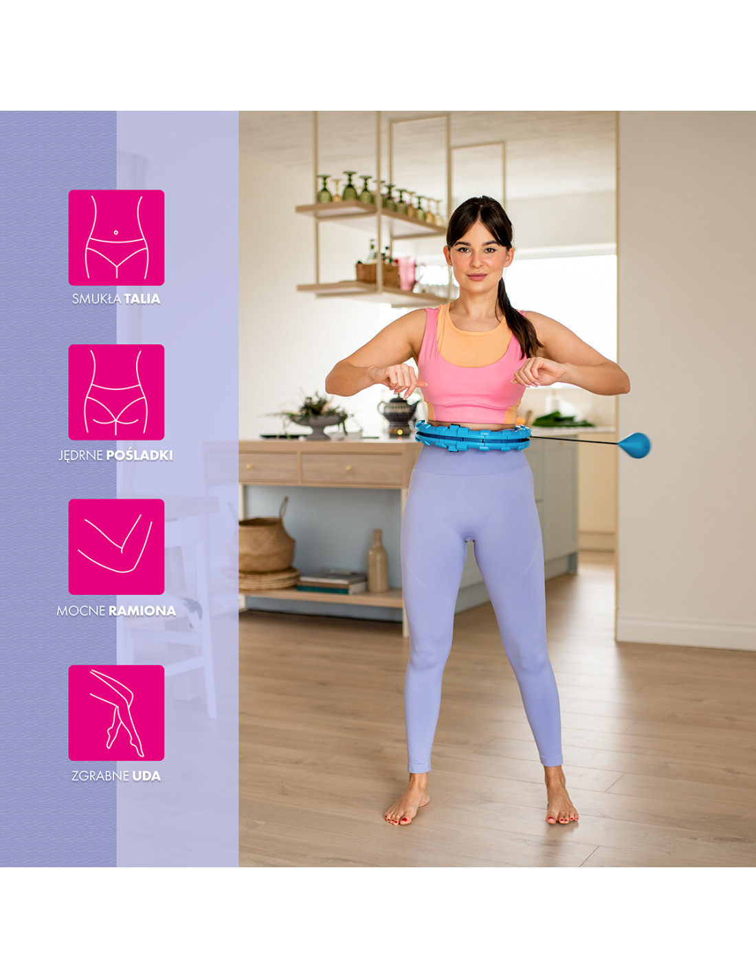 Die schnellsten Trainingsergebnisse erzielen wir durch Kombination des Trainings mit dem Hula-Hoop-Reifen FH01 und gleichzeitiger Verwendung des Gürtels BR160 One Fitness. Dieses Training ermöglicht es, die Figur noch schneller zu verbessern. Die Verwendung des Gürtels erhöht die Schweißbildung während des Trainings, wodurch nicht nur Wasser aus dem Körper, sondern auch Toxine, Salze und einige Metalle ausgeschieden werden. Darüber hinaus erhöht der Gürtel den Trainingskomfort erheblich und ermöglicht es uns, das Training wesentlich zu verlängern.