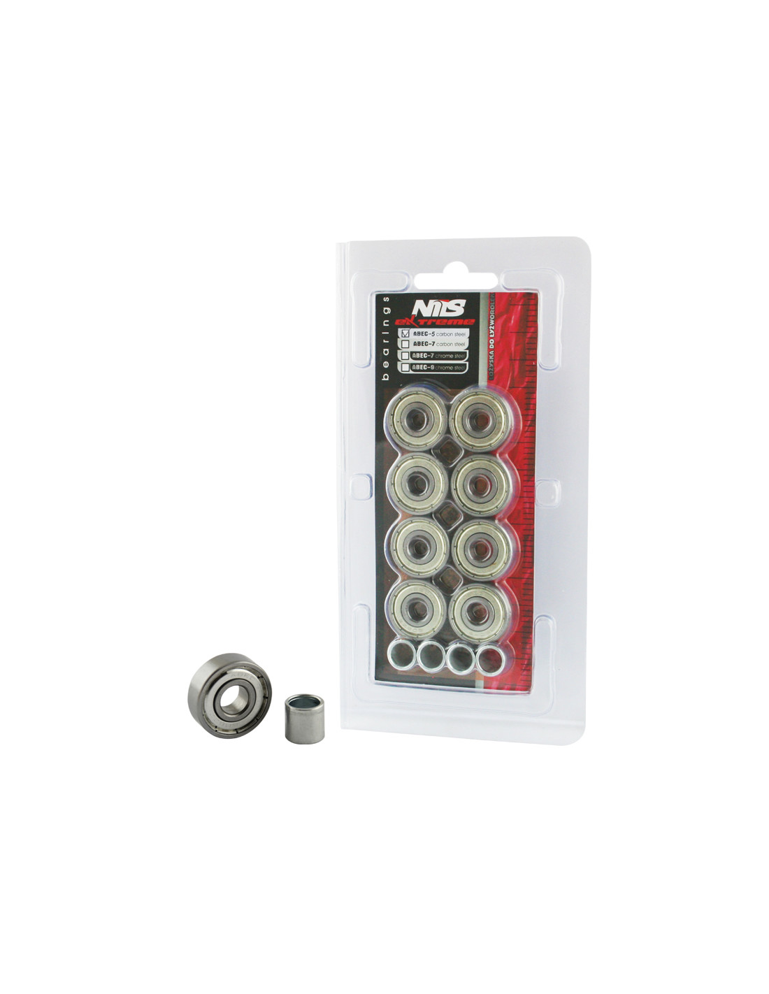 Die Lager ABEC-5 Nils Extreme wurden aus hochwertigem Carbonstahl hergestellt, der die ideale Härte und Haltbarkeit gewährleistet. Sie zeichnen sich durch den geringsten Rollwiderstand aus, was nach den amerikanischen Toleranzklassen von Annular Bearing Engineering Commitee, Abkürzung ABEC, die höchste Geschwindigkeit bedeutet. Ein wichtiger Parameter dieser Lager ist ihre Exzentrizität, d.h. die Rundheit der Fläche im Innenring, die lediglich 0,0035 mm beträgt. Die Lager können für Inliner, Skateboards und Roller verwendet werden.
