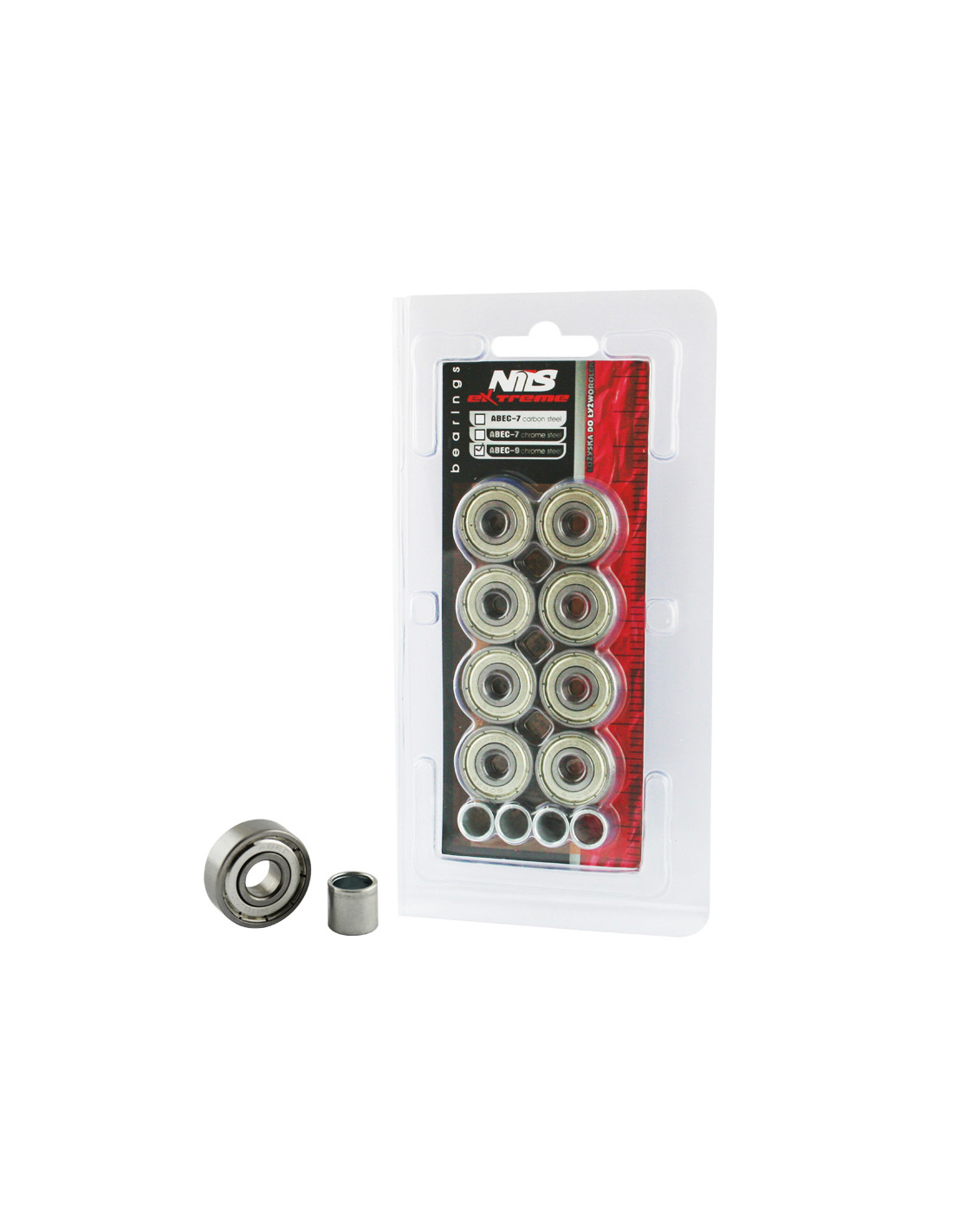 Die Lager ABEC-9 CARBON Nils Extreme wurden aus hochwertigem Carbonstahl hergestellt, der die ideale Härte und Haltbarkeit gewährleistet. Sie zeichnen sich durch den geringsten Rollwiderstand aus, was nach den amerikanischen Toleranzklassen von Annular Bearing Engineering Commitee, Abkürzung ABEC, die höchste Geschwindigkeit bedeutet. Ein wichtiger Parameter dieser Lager ist ihre Exzentrizität, d.h. die Rundheit der Fläche im Innenring, die lediglich 0,0012 mm beträgt. Die Lager können für Inliner, Skateboards und Roller verwendet werden.