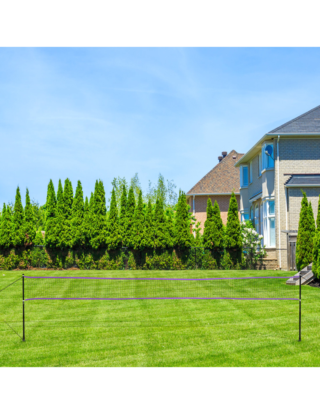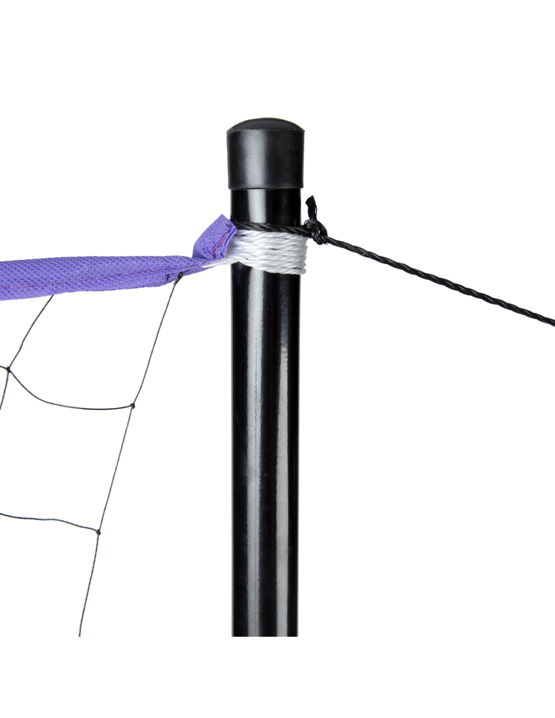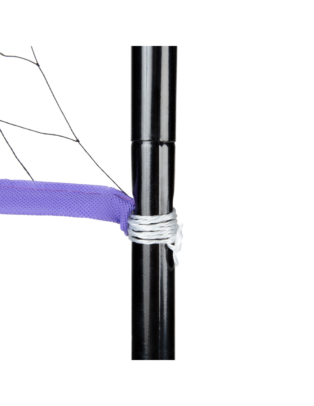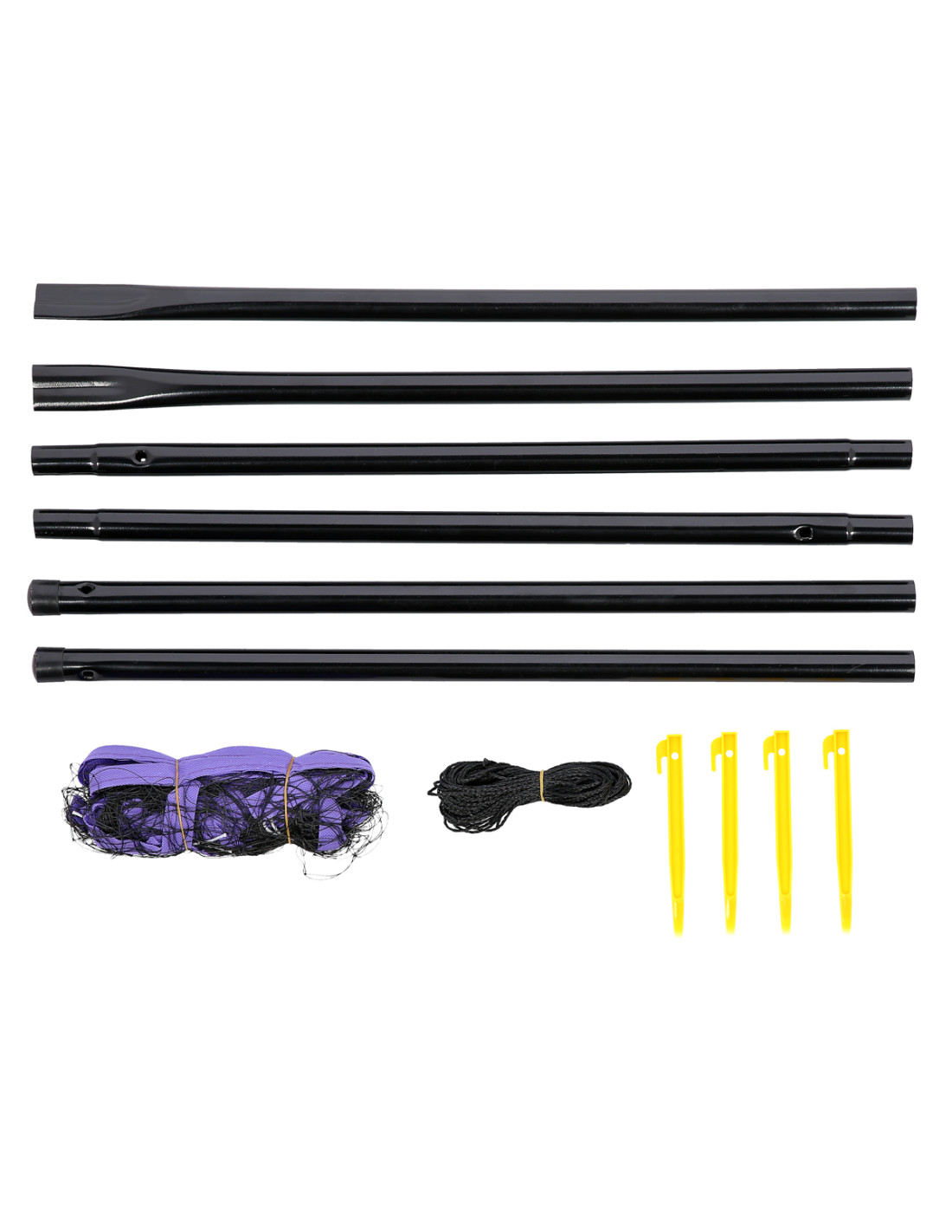Bei der Montage des Produkts werden Stangen als Gestell in den Boden gesteckt, an denen sich das Netz befestigen lässt. Sowohl das Netz, als auch das Gestell sind wetterbeständig. Die Länge des Netzes beträgt über 6m, daher ermöglicht es, zwei Spiele gleichzeitig frei auszutragen.
